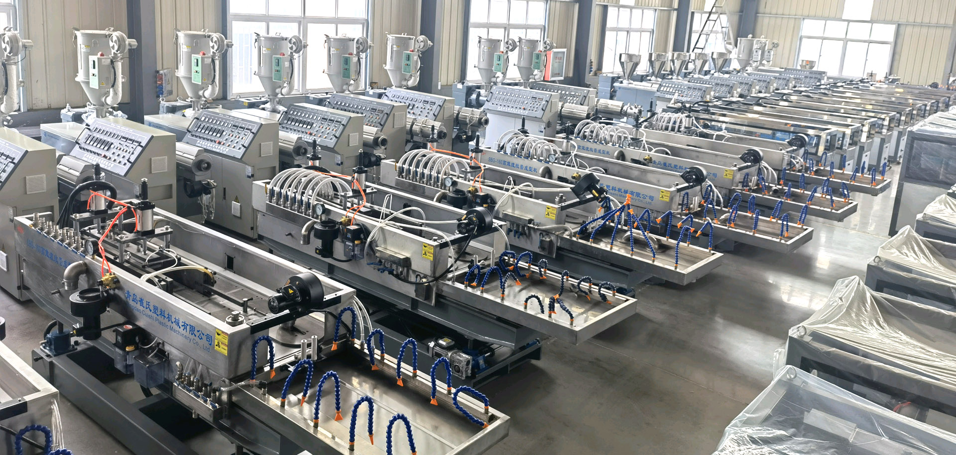 青島崔氏塑料機械:生產(chǎn)的預(yù)應(yīng)力塑料波紋管設(shè)備、電力管設(shè)備、塑料波紋管設(shè)備、汽車線束波紋管設(shè)備、PPR、PE、PVC、PERT管材設(shè)備及其它各種管材設(shè)備、塑料型材設(shè)備、塑料蜂窩板設(shè)備, 遠銷:歐州,獨聯(lián)體,南美洲,中東,東南亞,大洋州,非洲等地的20多個國家和地區(qū)。